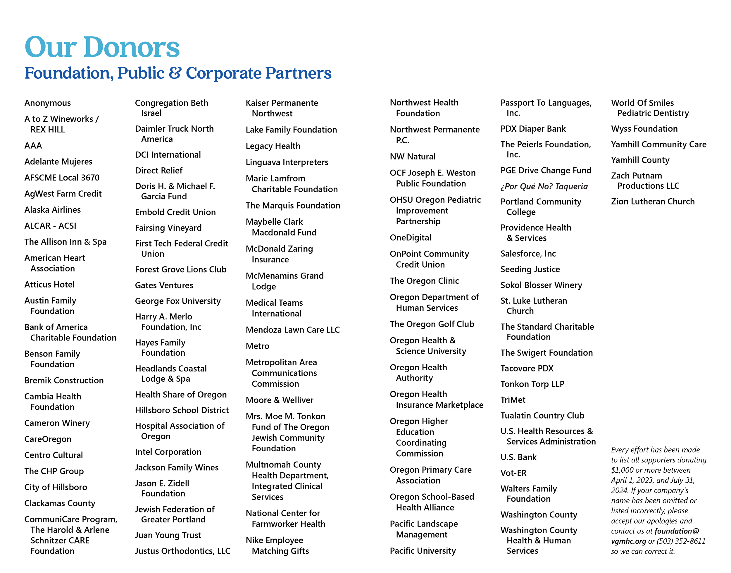 To achieve our mission of providing high-quality, culturally appropriate health care, Virginia Garcia relies on the generous support of many other partners in our community, including businesses, government agencies, foundations and nonprofit organizations. Click here for more information about sponsorship opportunities at Virginia Garcia.